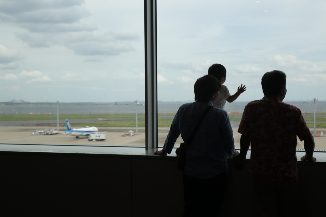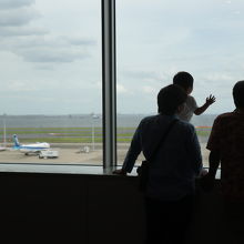 厳密にはデッキとは言えませんが、ターミナル中央部分には屋内からガラス越しに航空機の離発着を見ることができるスペースがあります。雨が降っていても風が吹いていても関係なく見られるのは良いですが、外の方が雰囲気や音を直に味わうことができるので個人的にはそちらがオススメですね。