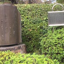 朱色で見事な三解脱門をくぐって境内の中に入ると右側に東京タワーを従えた本殿が見えます。本殿に向かって歩いて行くと、石段の脇のツツジの生垣の中にこの法然上人歌碑があります。事前に調べて行ったので見つけることができましたが、そうななければ見過ごしてしまっていたと思います。石碑に刻まれている文字は見にくいですが、近くに説明板がありますので、それを見ればわかります。