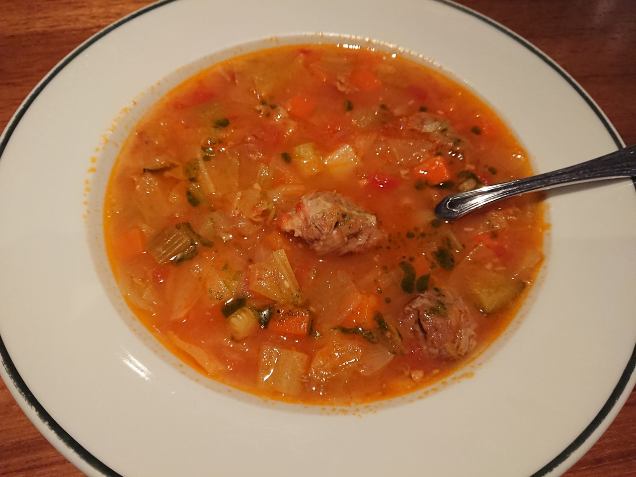 寒くなってきたので「豚ほほ肉とたっぷり野菜のミネストローネ」を注文。