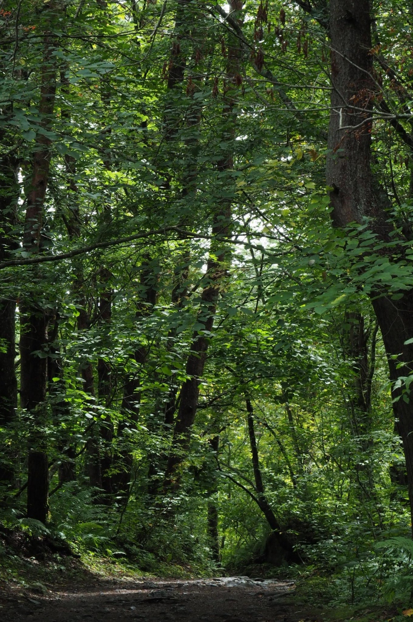 急な斜面はほとんどありませんが、岩や木の根で滑りやすい箇所もあるので靴はスニーカーなど底の厚いしっかりしたものが必要かと思います。