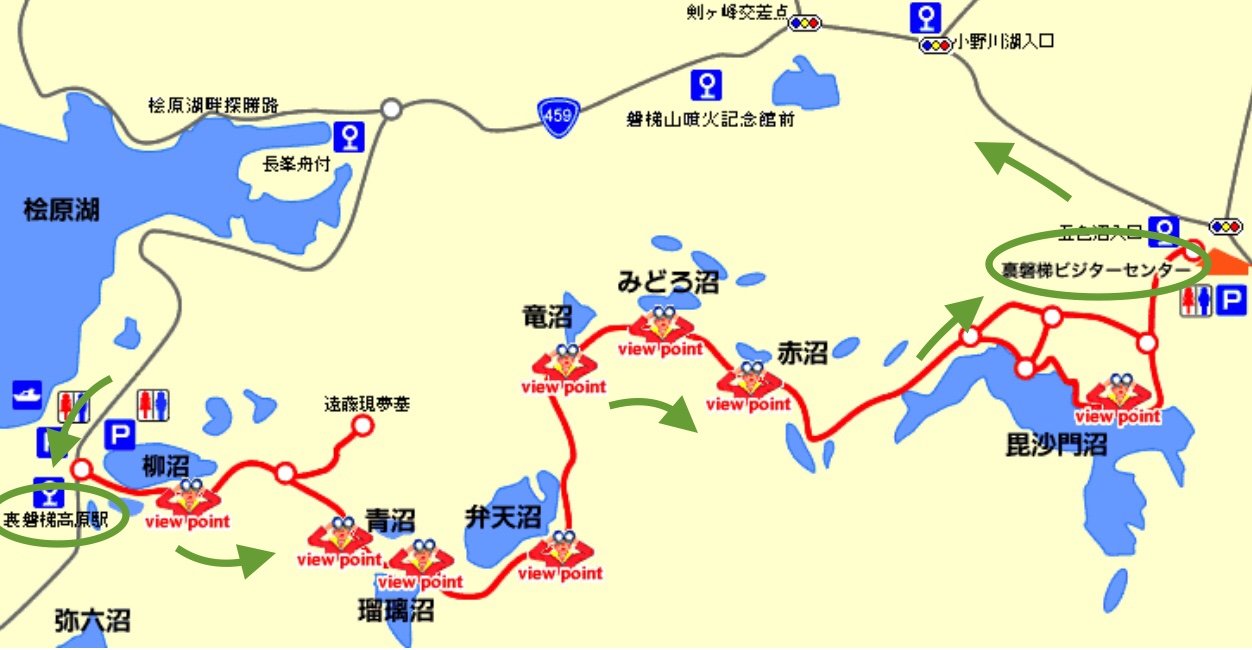 五色沼湖沼群は裏磐梯観光の目玉ですので、全行程歩けるのが望ましいですが、時間のない場合は一番大きい毘沙門沼だけでもその雰囲気は味わえると思います。