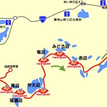東側端の毘沙門沼側、西側端の柳沼側それぞれにバス停があり、どちらからも探勝路に入れます。車利用の場合もどちらかに駐車して戻ってくれば大丈夫です。