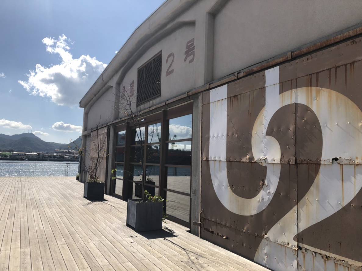 今日は面白い施設に行きました。尾道駅から海沿いを走ると海運倉庫をリノベーションしたという、2000㎡の広さがある複合施設がありました。しまなみ海道を利用する人用に自転車で泊まれるホテルがあり、真ん中にレストラン、ベーカリー、カフェがありテラス席もありました。ベーカリーには天然酵母や発酵バターを使った焼き立てパンや、新鮮野菜を使った炭焼きグリルやピザが人気だそうですが、今日は食後の為アイスコーヒーとカフェラテを注文して、ベーカリーで小腹を満たしました。テラスからは海がとても綺麗で、パンも美味しかったです。