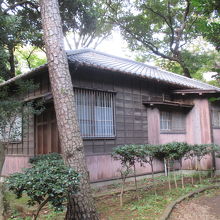 大きな木に覆われ、陽もあまり射さない様なところにありました。学習院が全寮制だった頃に院長になった乃木希典さんが4年間をそこで過ごした建物とのことですから余計な心配しましたが、ここは移築・保存場所とのことでした。すぐ横にある御榊壇(乃木さんが自費で造ったそうです)の隣に、移築したということでしょう。