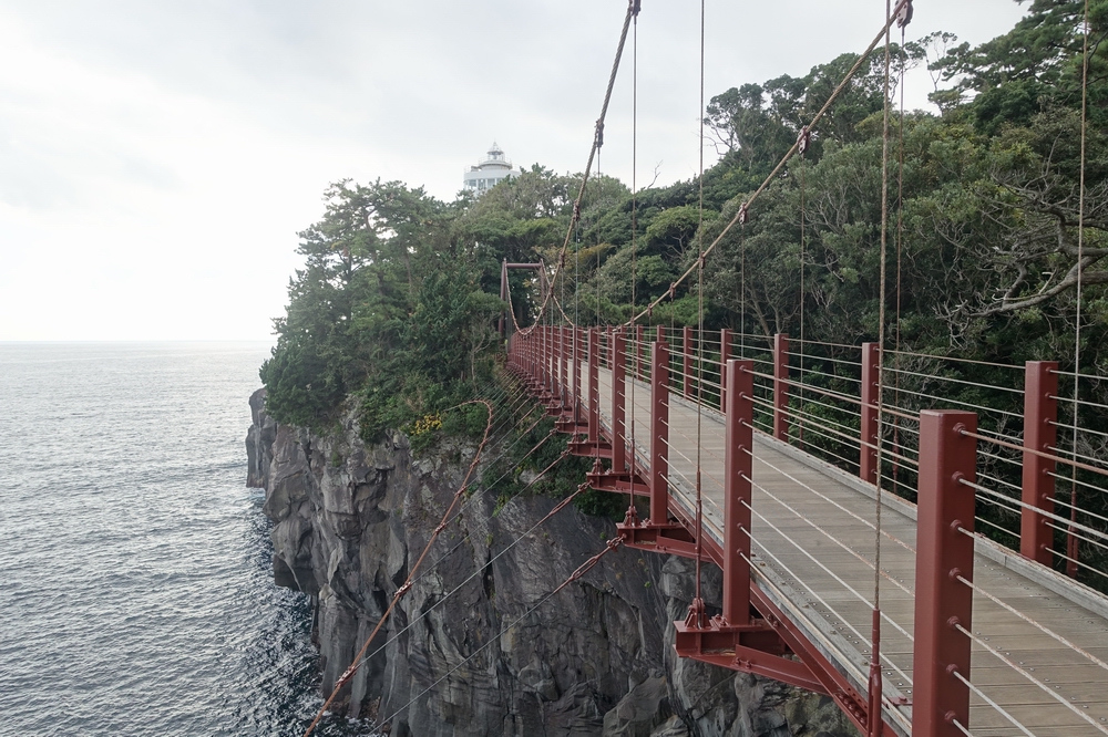 観光客がよく行くのは門脇のほうで、灯台の手前に売店もあります。駐車場は海まで近いぶん門脇のほうはゲート式の有料(1回500円で15分までなら無料)。見所は門脇吊橋と灯台、そして海岸線の景色でしょう。