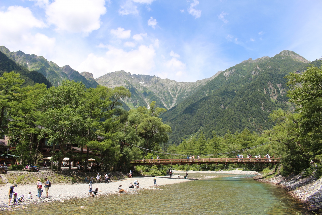 上高地の象徴であり、川と橋の風景も絵になる景色ですし、橋の上からの眺めもすばらしいです。