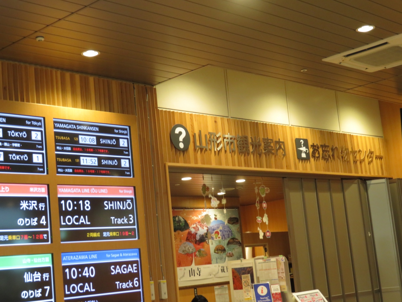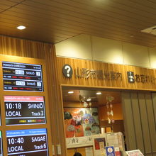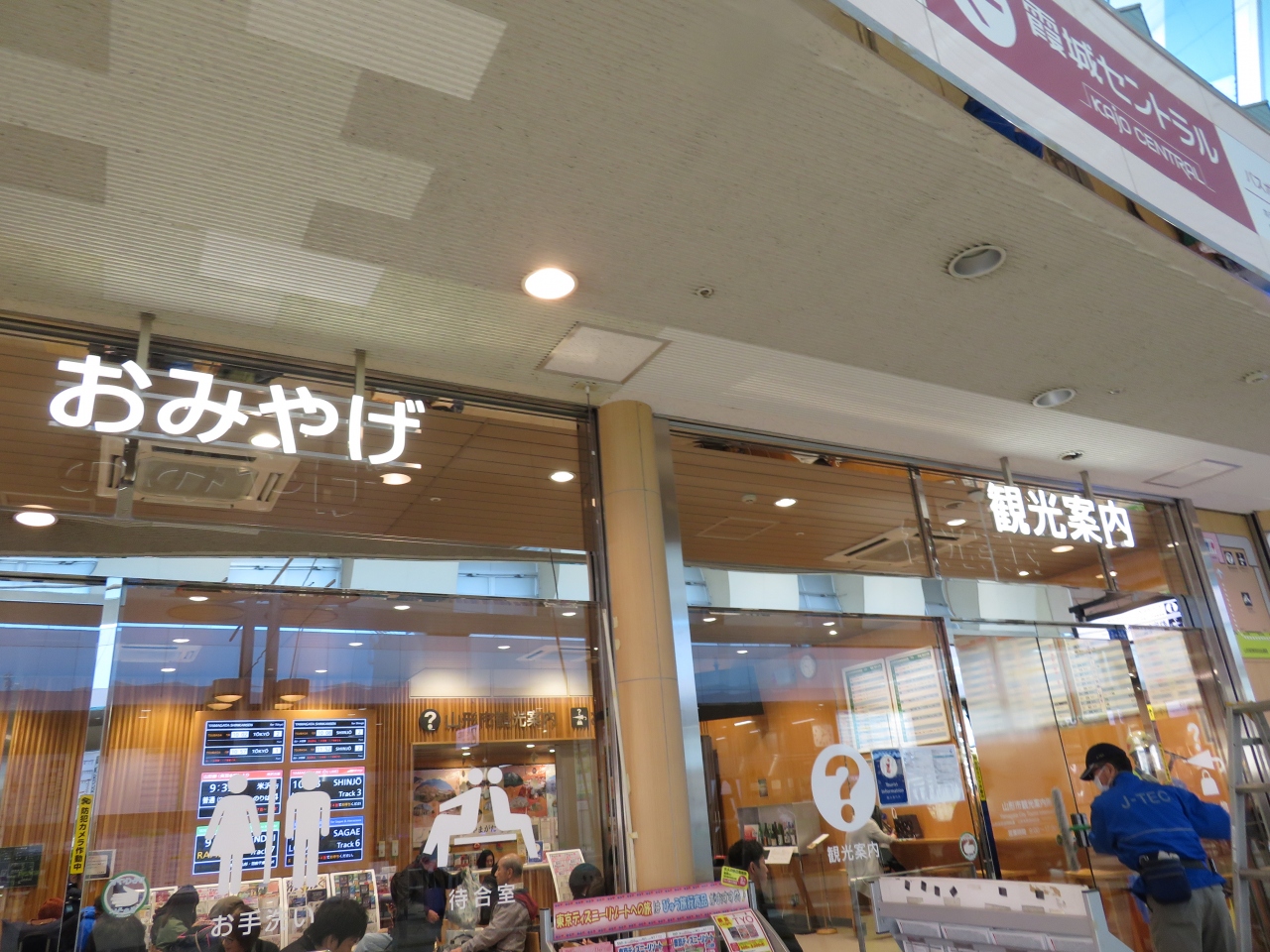 駅構内の観光案内所です。土産物も売っていて、休憩用の椅子もあり、電車の時間待ちのお客さんが大勢座っていました。