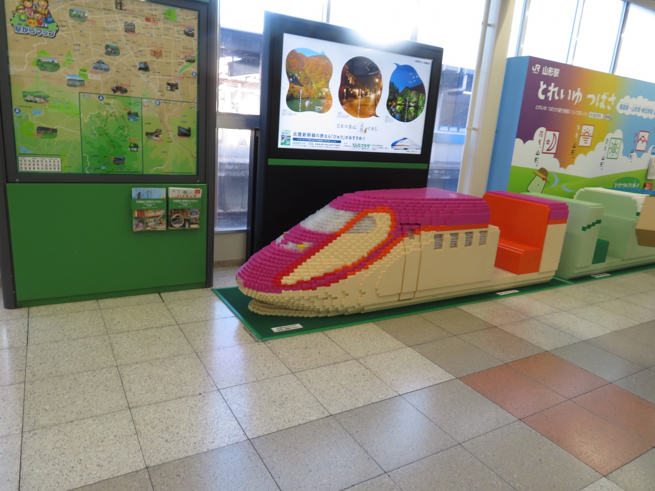 ホームまでいく通路にレゴブロックで造られたミニつばさがありました。