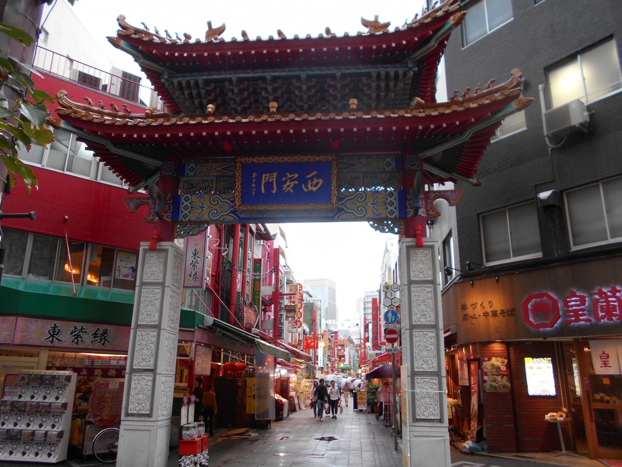 日本三大中華街の一つ神戸南京町のパークロードに面した西口に建つ楼門。高さ9m幅5mの壮大な楼門で中国の都であった西安の名にふさわしい中国式楼門です。南京町の三つの楼門で戦後最後に完成した楼門だそうです。この門から両側に中華料理店が並ぶ南京西路が広場に繋がります。小さな中華街ですから三つの楼門は必見ですね。