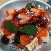 いつも行列ができているパンケーキ屋さんで、この日は週末の午後16時少し前に伺ったのですが、15分ほど発券機で順番を待ってから入店しました。ベリー系の限定パンケーキを食べた所、見かけよりさっぱりしていてとても食べやすかったです。