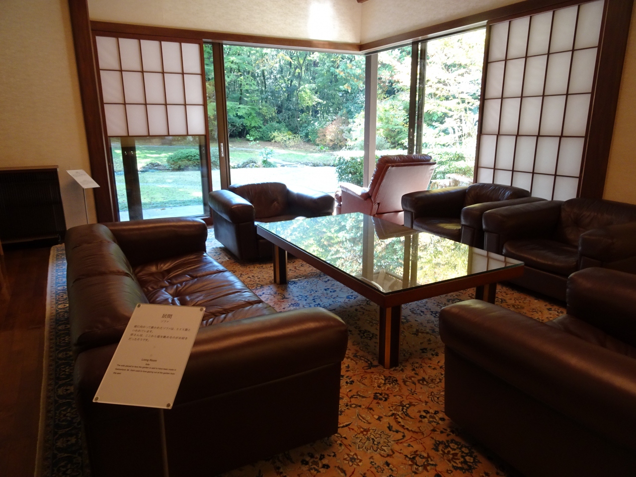 74歳から17年間、静かで落ち着ける御殿場のこの地に居を構えました。玄関ホールの広さ、居間、書斎兼応接室、和室、食堂等からなる落ち着ける住居です。居間には岸さんが好んで座っていた皮のソファから庭が見れ、居間や食堂からも庭がきれいに見れます。無料ボランティアがあり、説明を受けられるので時間があればぜひ受けたい。庭には伊藤博文や吉田茂元首相から贈られた灯篭があります。岸さんの人柄がうかがえます。庭は四季それぞれに花が咲き、川音も聞かれ、岸さんのセンスも感じました。300円なので、是非行ってみてください。