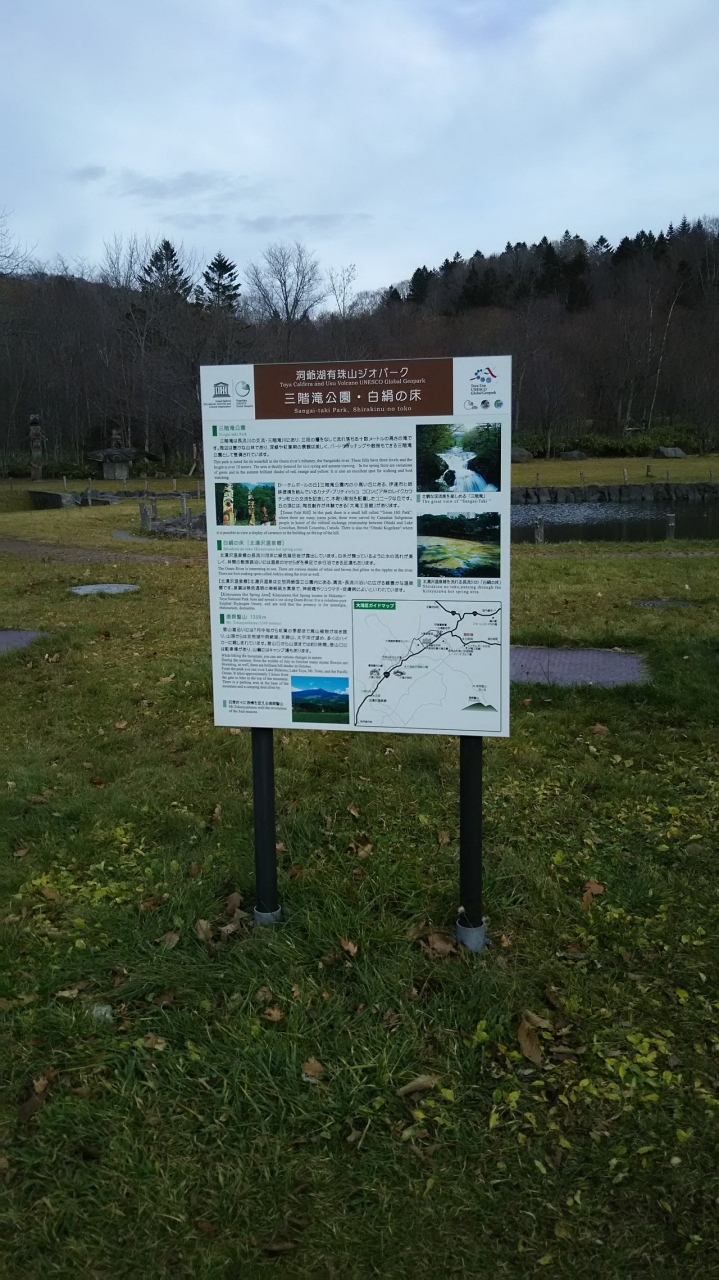 水が豊かで清らかな流れの滝がある公園と広い駐車場。滝といっても落差の無い滝。夏は涼しく秋は紅葉がきれい。伊達から白老に抜ける道にある広い駐車場。かつては土産物やさんがありましたが今では撤退して大きな建物だけが残っている。寂しい公園