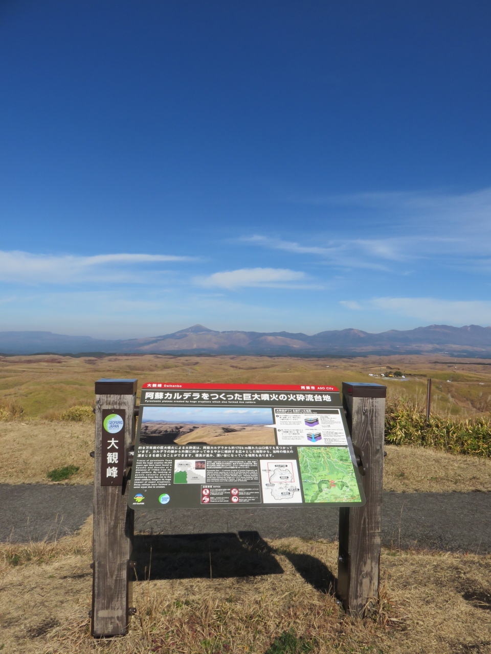 標高936mに位置する展望台からは眼下に阿蘇岳、その向こうに阿蘇五岳、どこにいっても思わず時間忘れてその景色に見とれてしまいます