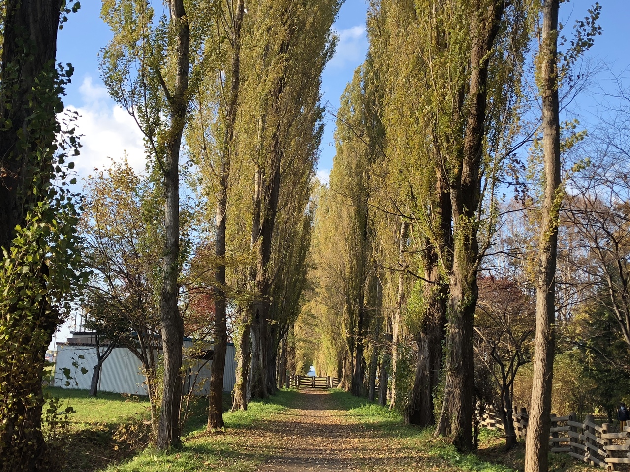 ポプラの並ぶ並木と、途中で行き止まりになっている風景は、美瑛あたりでありそうな美しい景色です。台風の影響でだいぶ木が弱ってしまったそうで、もっと万全の状態だともっと見ごたえがあるのかもしれません。