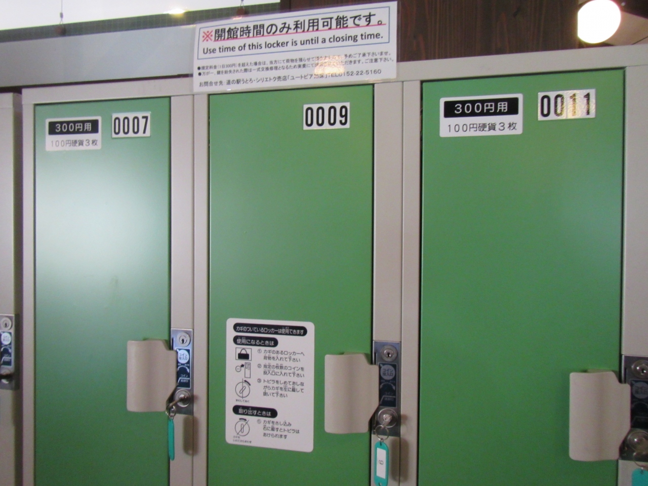 道の駅内にはロッカーが設置され、1日¥300円の割に比較的大きなサイズですが、開館時間のみ利用可能ということで、それを超える場合、回収されてしまうこともあるようで、利用がなかなか厳格なようです。