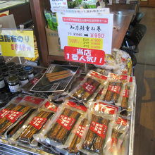 お土産はきれいに包装されたお菓子類が並ぶほか、グッズ類もありますが、ここから先、5、6kmほどのところにある、フレペの滝のところにある知床自然センターにあったカムイワッカ湯の滝に入るための足袋・タオルセットは見当たりませんでした。