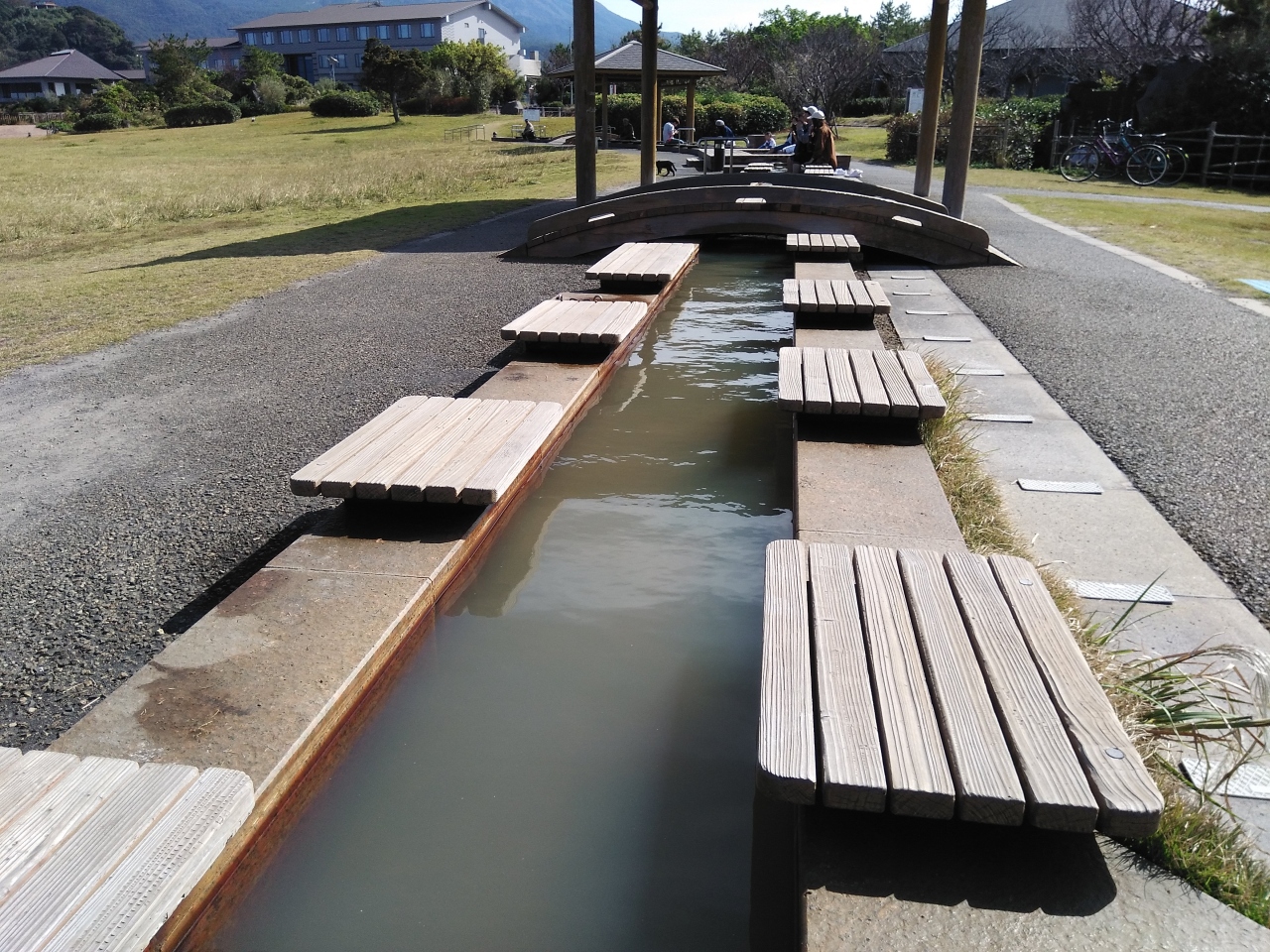 全国各地に足湯はありますがこれだけの長い足湯は他に類がないと思います。