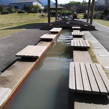 長い足湯なので場所によって湯の温度がかなり違うように思いました。