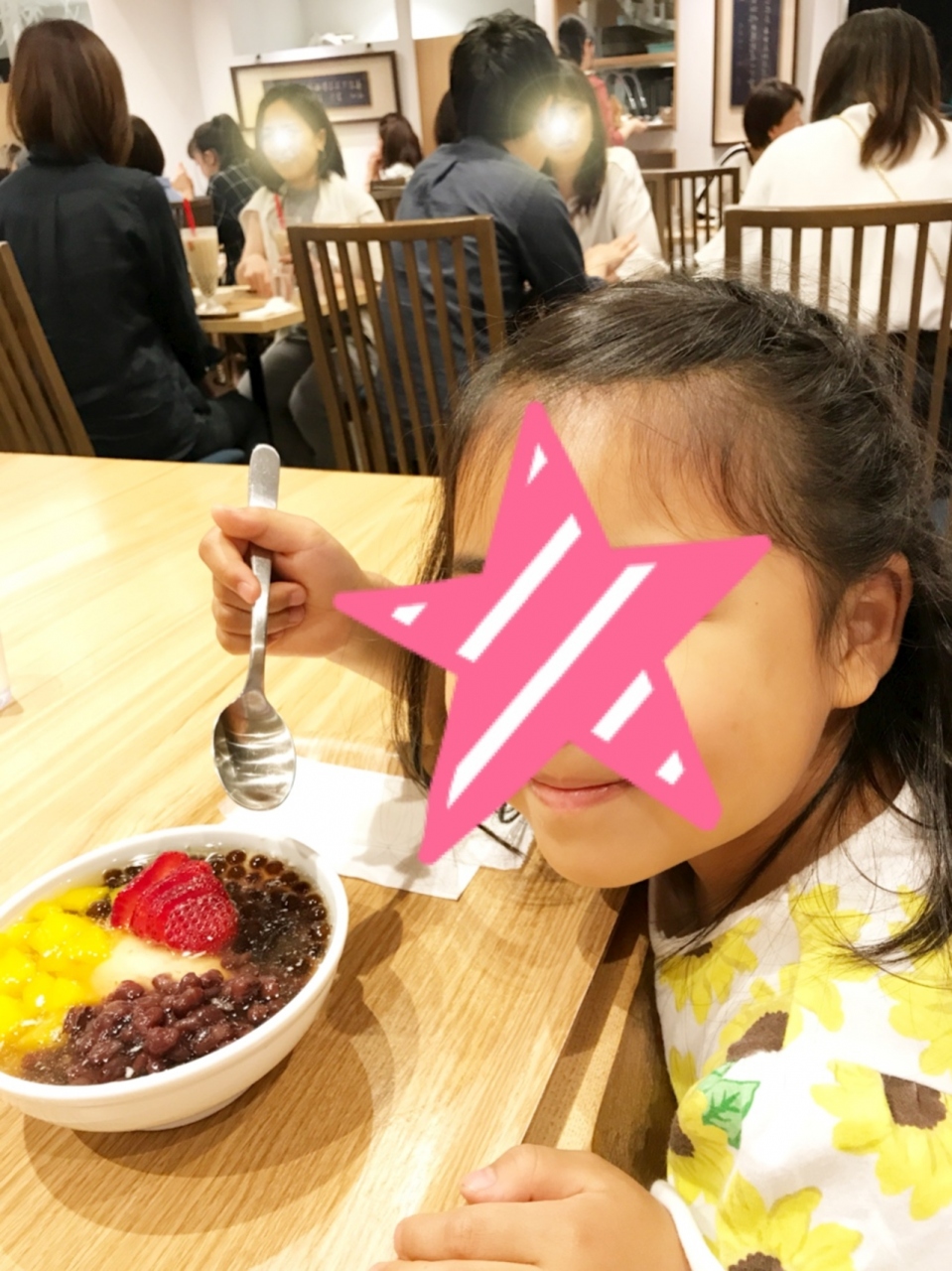 豆花はマンゴー、いちご、あずき、タピオカが入っているものにしました。