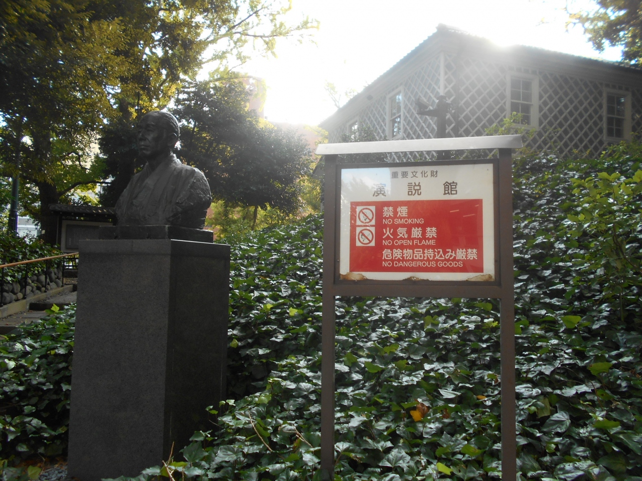 旧図書館が改修工事中で、その前にあった福澤諭吉像が、この前に移転しているようだ。