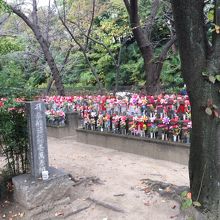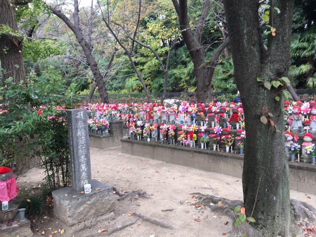 三解脱門をくぐって境内の中に入り、本殿の右の方へ行くと西向聖観世音菩薩があります。そこから将軍家の墓所に向かってずっとこの千躰子育地蔵尊が並んでいます。小さなお地蔵さんがカラフルな帽子をかぶっていたり、着物を着ていたりと、一つ一つ飾りが違いますが、どれも風車が飾られていて、この一帯はとてもカラフルでした。