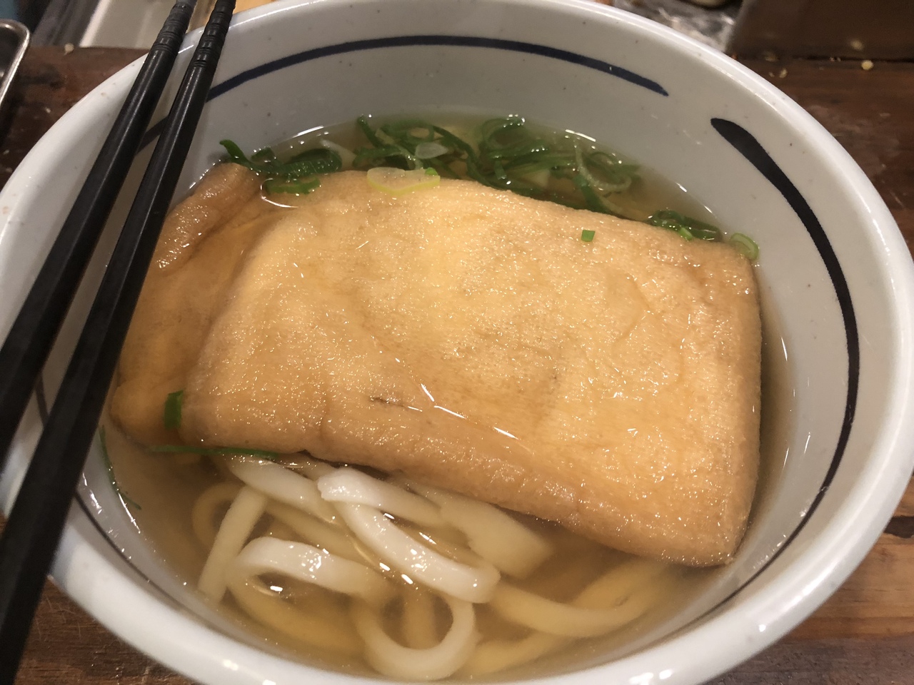 五反田で友人と食事をした後に締めのうどんとしておいしくいただきました。立ち食いうどんのお店で、店員さんのほとんどは外国人のようでしたが、応対はキビキビしていて快活でした。きつねうどんはおあげの甘さがよく効いており、しかもコシのあるおいしいうどんでした。
