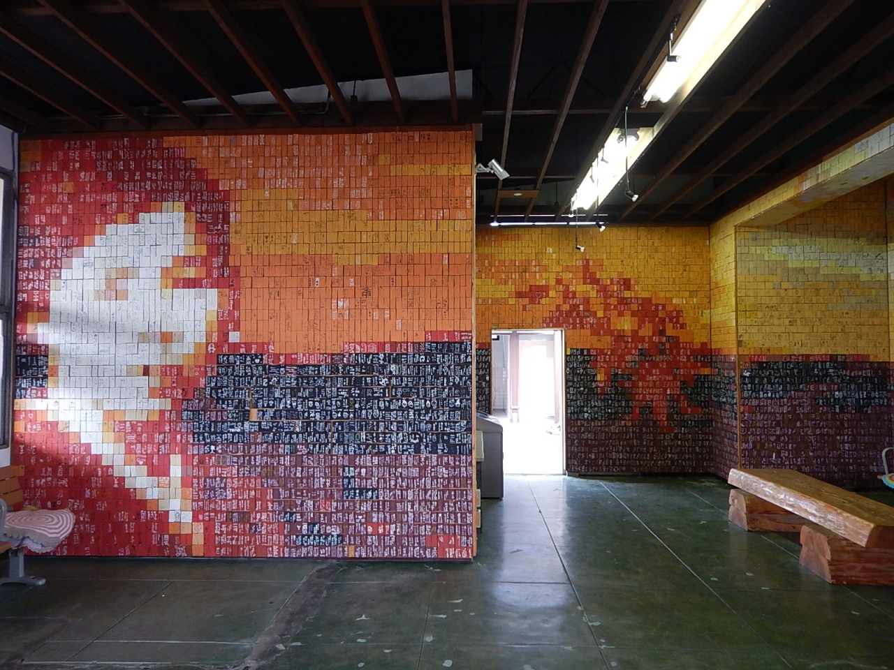 また、蒲鉾板で作ったモザイクアートもいくつかあり、仙崎駅構内の肖像画が一番きれいにできていた。