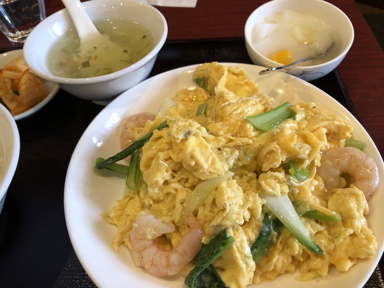 卵と芝エビの炒め物をランチでいただきました。店内でタバコが吸われているのが多少残念ではあるものの、ワイワイとした元気な接客のもと、おいしい中華料理がいただけました。プリプリの芝海老は新鮮で美味しかったです。味付けはあっさりでした。