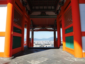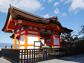 清水寺の西門は「さいもん」と読み、仁王門を潜り抜けた右奥に有ります。この門は2度の火災に遭いましたが1631年に再建され現在見られる門ですので、なんと370年前に建てられた建造物です。当時この門は天皇しか通る事が出来なかった為「勅使門」と呼ばれていたそうです。