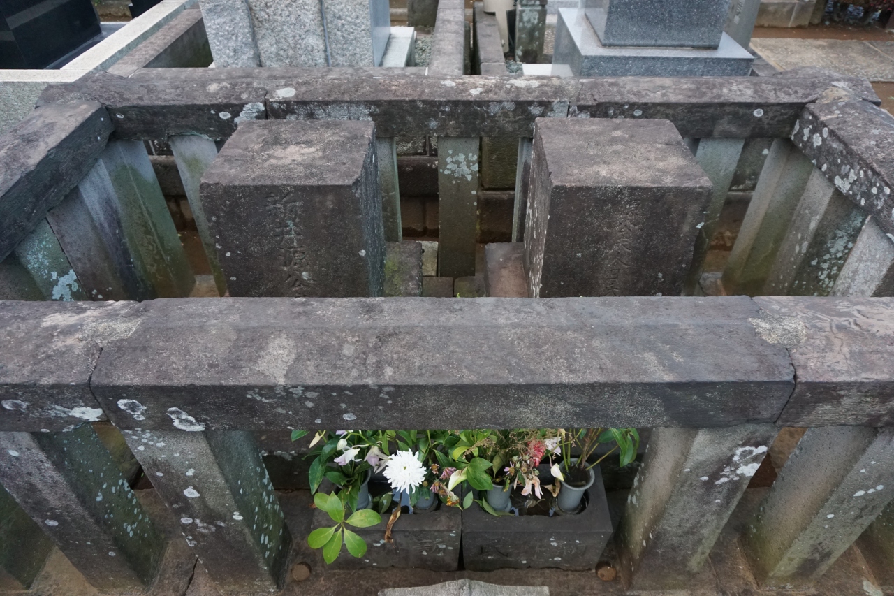 新井白石の墓は、中野区の高徳寺の境内。本堂裏手の共同墓地のちょうど中央部。一族の墓と一緒の墓だと思いますが、面白いのはその墓は皆、ちょっと異様なほど背が低い墓石。何か意味があるのかもしれませんが、なんとも不思議な眺めです。