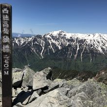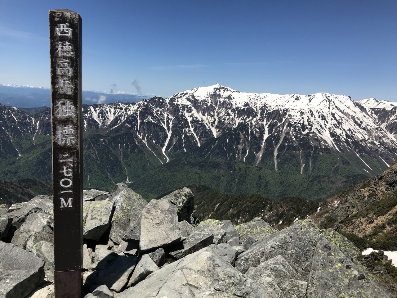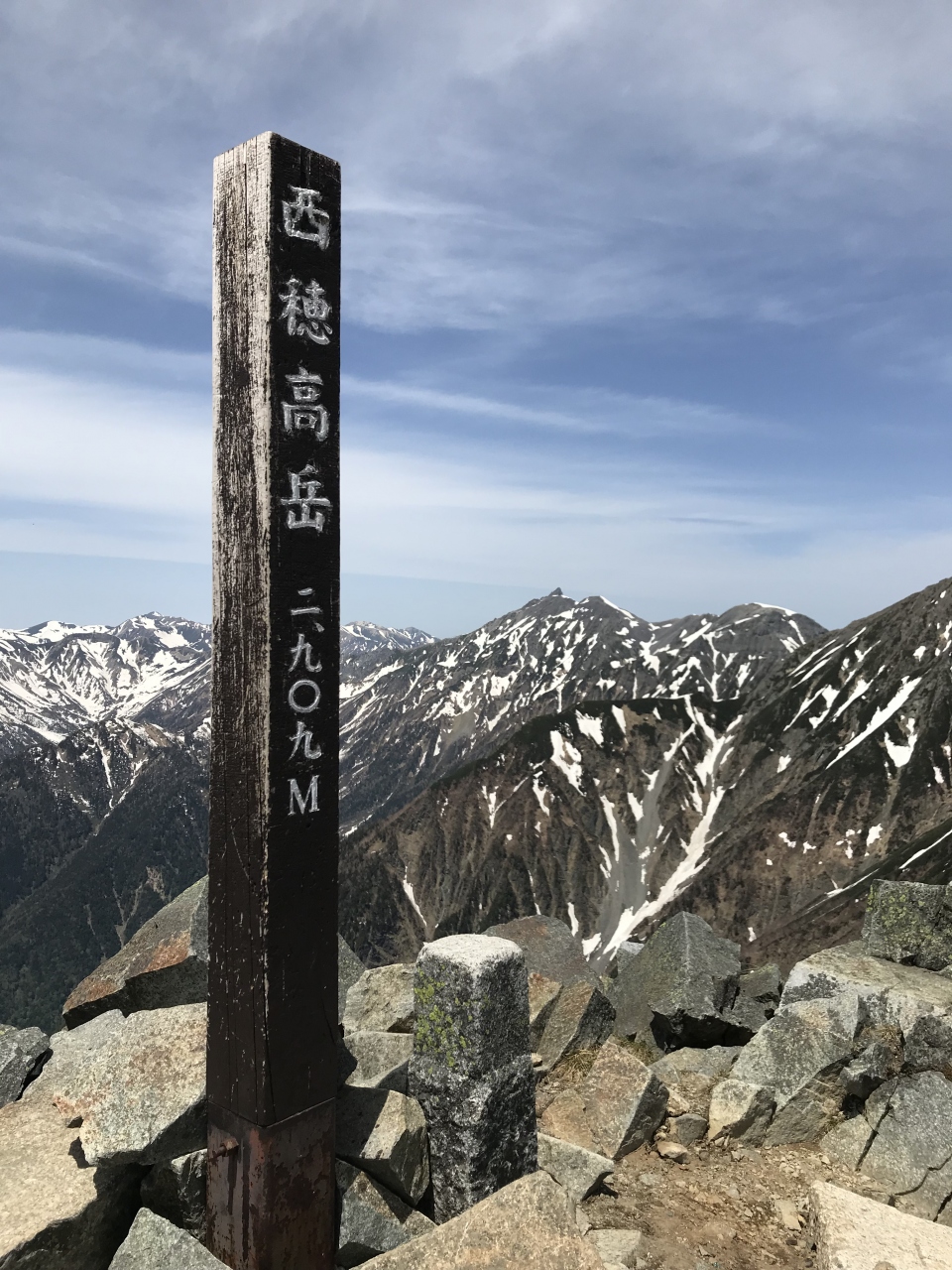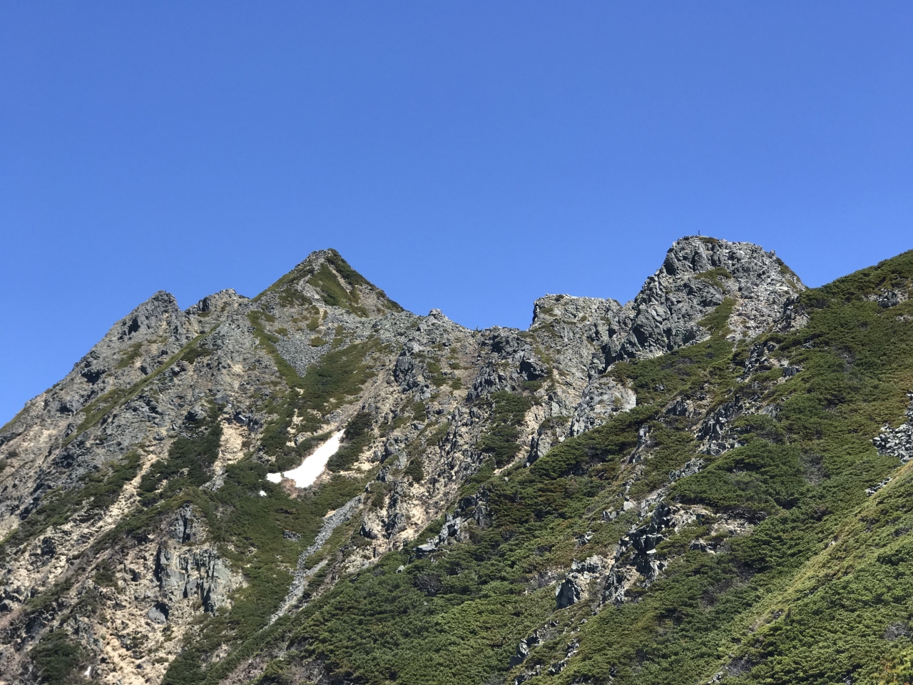 西穂高岳独標直下から岩登りとなる。独標から主峰までは大小いくつものピークを昇り降りすることになる。