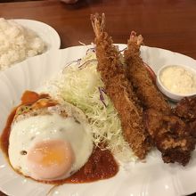カキフライと海老フライが美味しかった。衣がサクッとしていた。