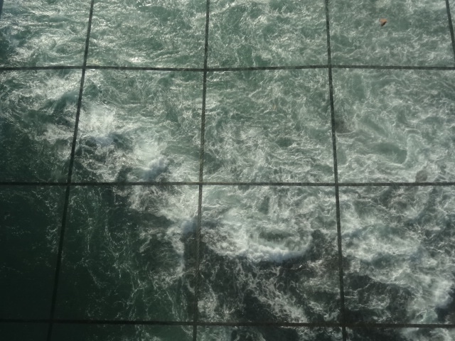 渦の道は、JR鳴門駅からバスで45分くらいのところにあります。バス停の鳴門公園からは歩いて五分くらいでしょうか。切符売場では、エスカヒルやエディとのお得な共通券をすすめられますが、大鳴門橋架橋記念館エディのほうがいいかもです。渦の道は450メートルの道が4つのセクションにわかれています。周りの景色を見たり足元の渦をみたり。道の途中にトイレもあって、掃除が行き届いていて、清潔なのが印象に残りました。