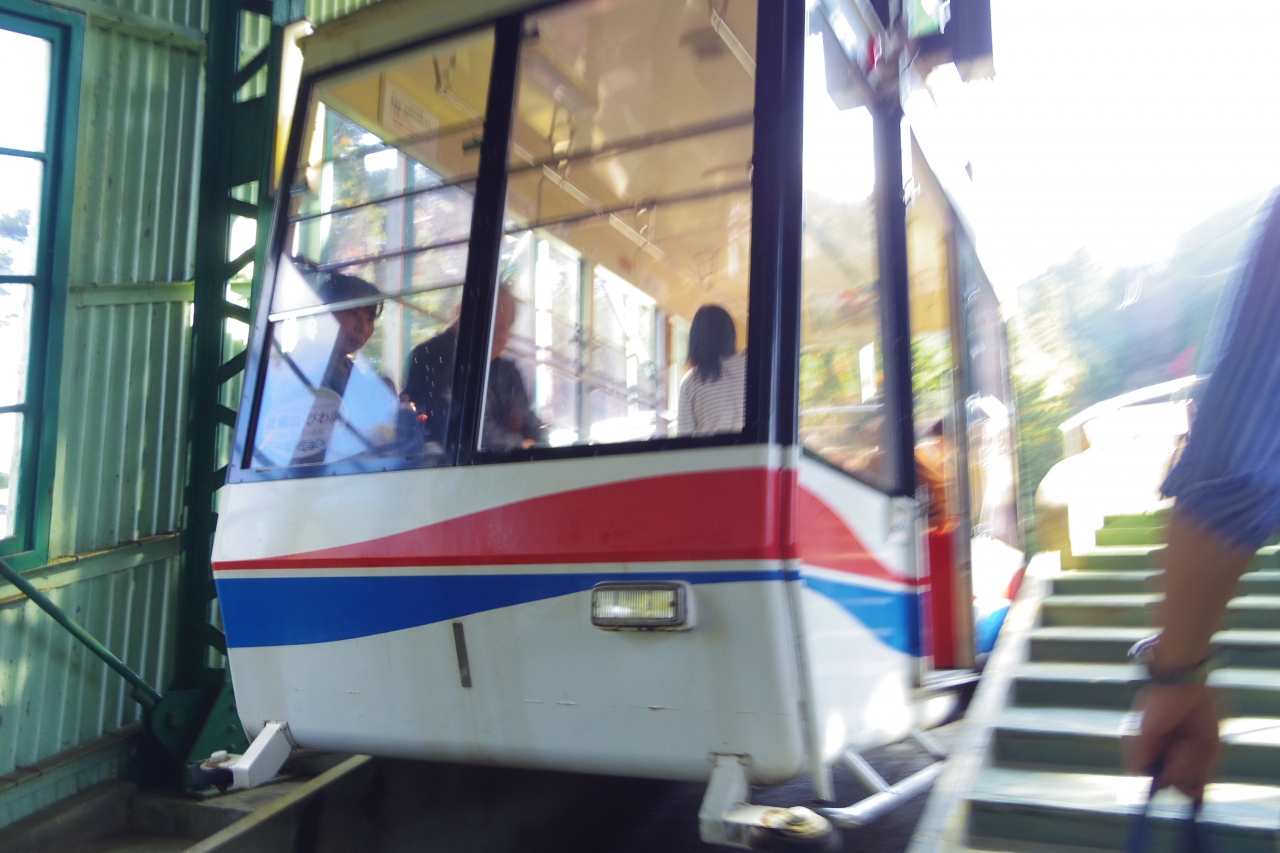 叡山電鉄の八瀬比叡山口駅から少し歩くと叡山ケーブルの駅があります。紅葉の時期の週末だったので朝からケーブル乗り場に人が並んでいました。ケーブルを降りるとロープウェイの駅はすぐ近く。混雑しているので、ロープウェイは満員になり次第発車でピストン運送という感じでした。紅葉の絶景なんですが、満員で人が立ってるので反対側の景色とかはよく見えない感じでした。