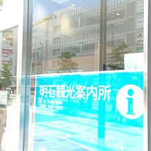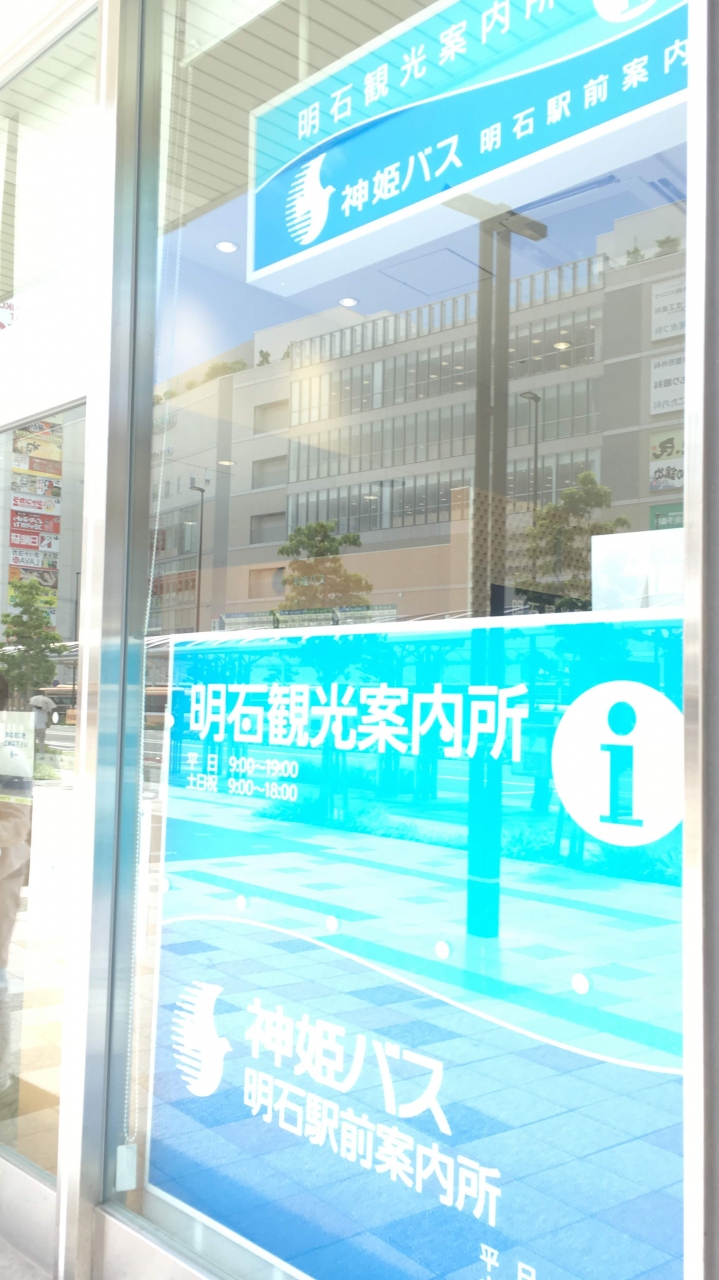 明石駅前にある観光案内所。さかなクンの大きな看板が目印です。改装してから敷地の半分は神姫バスの定期券販売所にもなっているので、さほど広いわけではありませんが、地図や割引クーポンの類はたくさんありますし、なによりも対応が大変親切です。