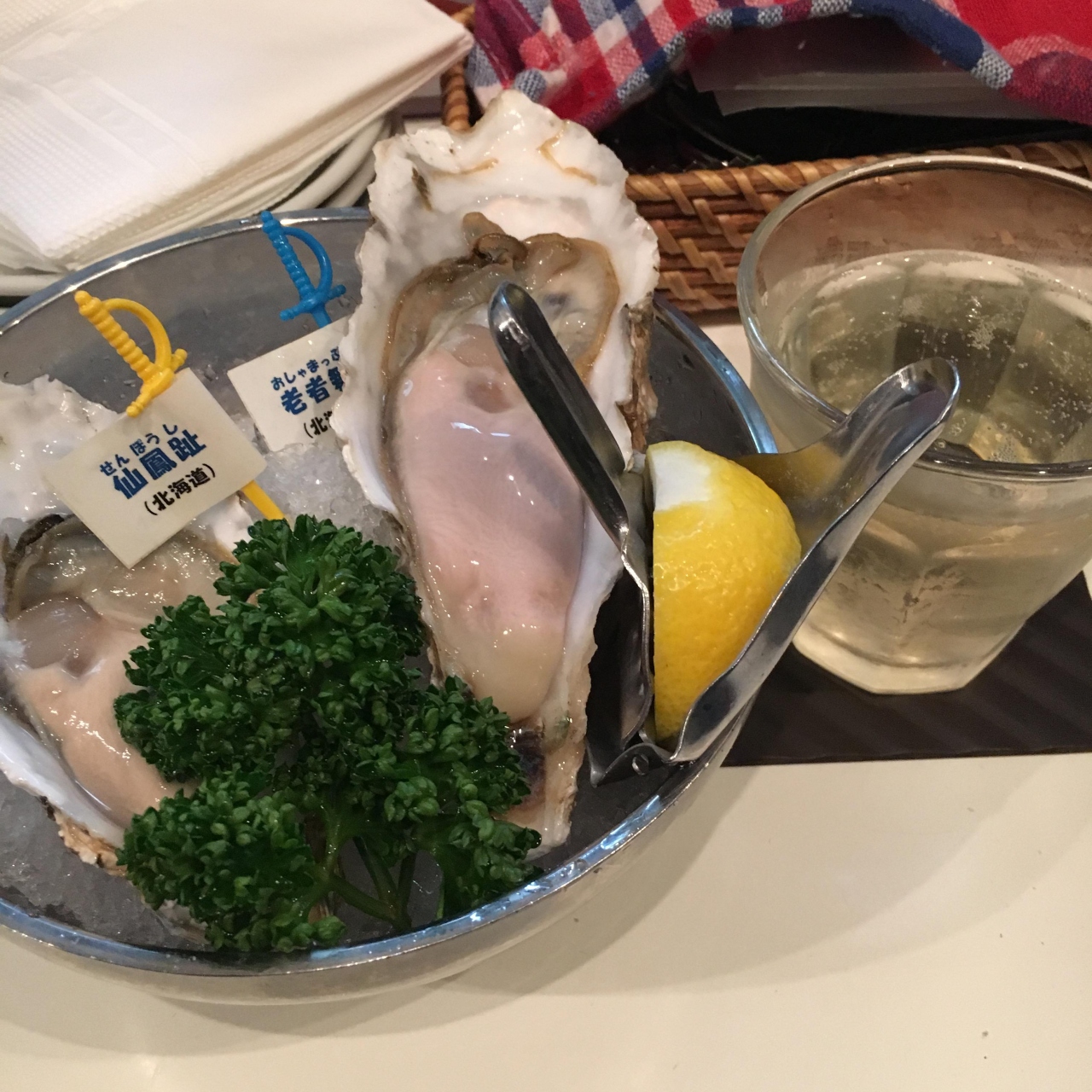 ハッピーアワー限定だったと思いますが、スパークリングワインと生牡蠣2つのセットがお得でした。スパークリングワインが普通のコップになみなみ注がれてきました♪