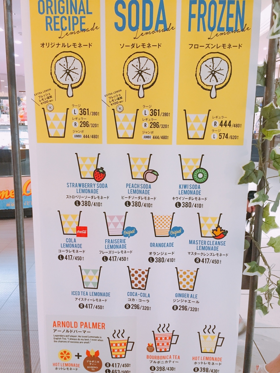 季節限定のフレイバーなど、色々とメニューには工夫を凝らしていましたけど、結局はオリジナルのシンプルなレモネードが1番美味しい!という事に後から気付くのは悲しいので、今回は冒険せずオリジナルレモネードを飲みました。 夜になっても暑い真夏だったので、Lサイズでも最後まで美味しく頂けました。