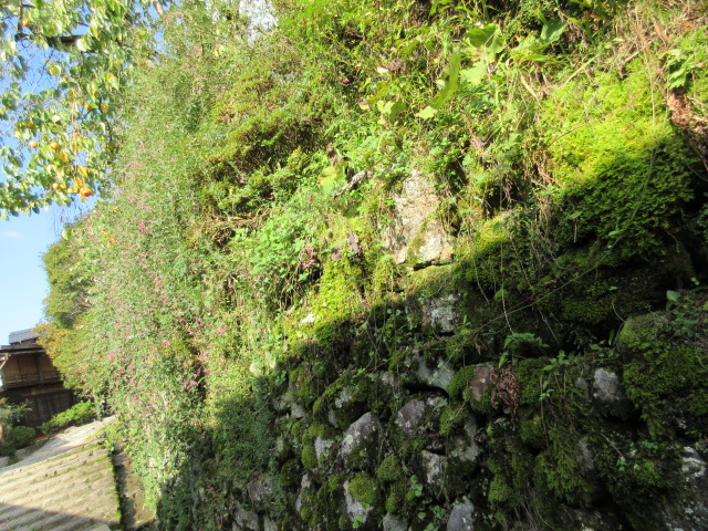 長野の中山道にある宿場町の妻籠宿を訪問しました。こちらの宿場町から1000メートルという看板があります。山の上にあるお城で、徳川秀忠が関が原に向かう際に、こちらにいたときに関ケ原の戦いが終わってしまったという場所です。現在は山に堀の跡がある程度です。ちなみに妻籠宿も枡形として作られていますので、その看板もありました。