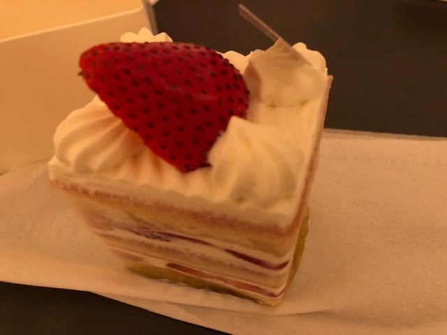 苺のショートケーキを食べましたが、中にもふんだんに苺が使用されていて