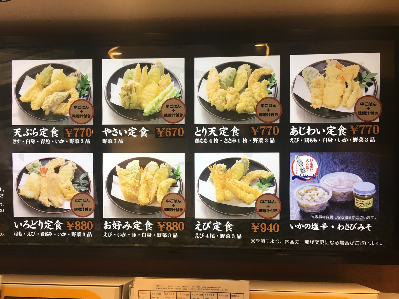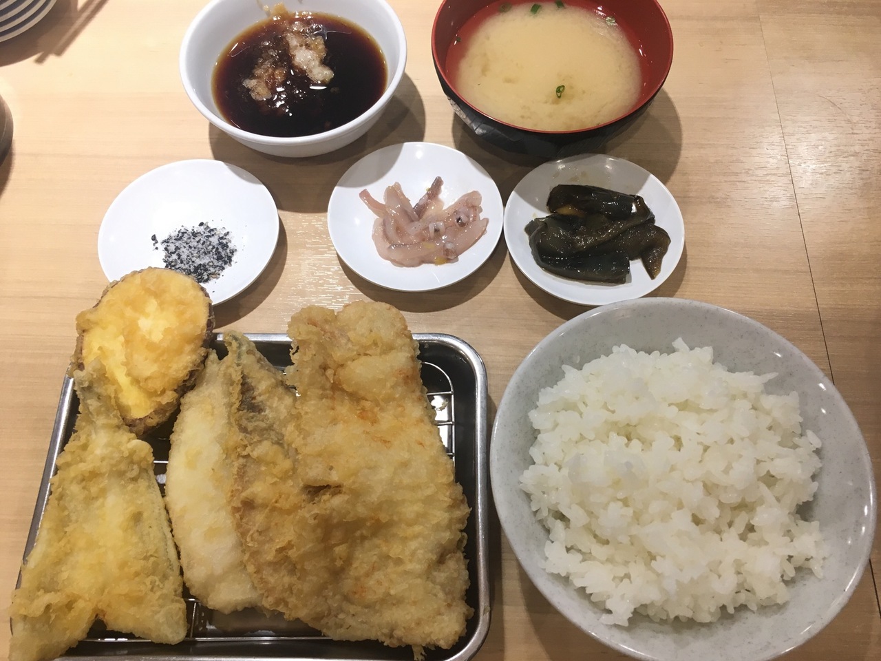 揚げたての天ぷらが出てきて、名物のいかの塩辛もあり、昼時は行列ができる名店です。