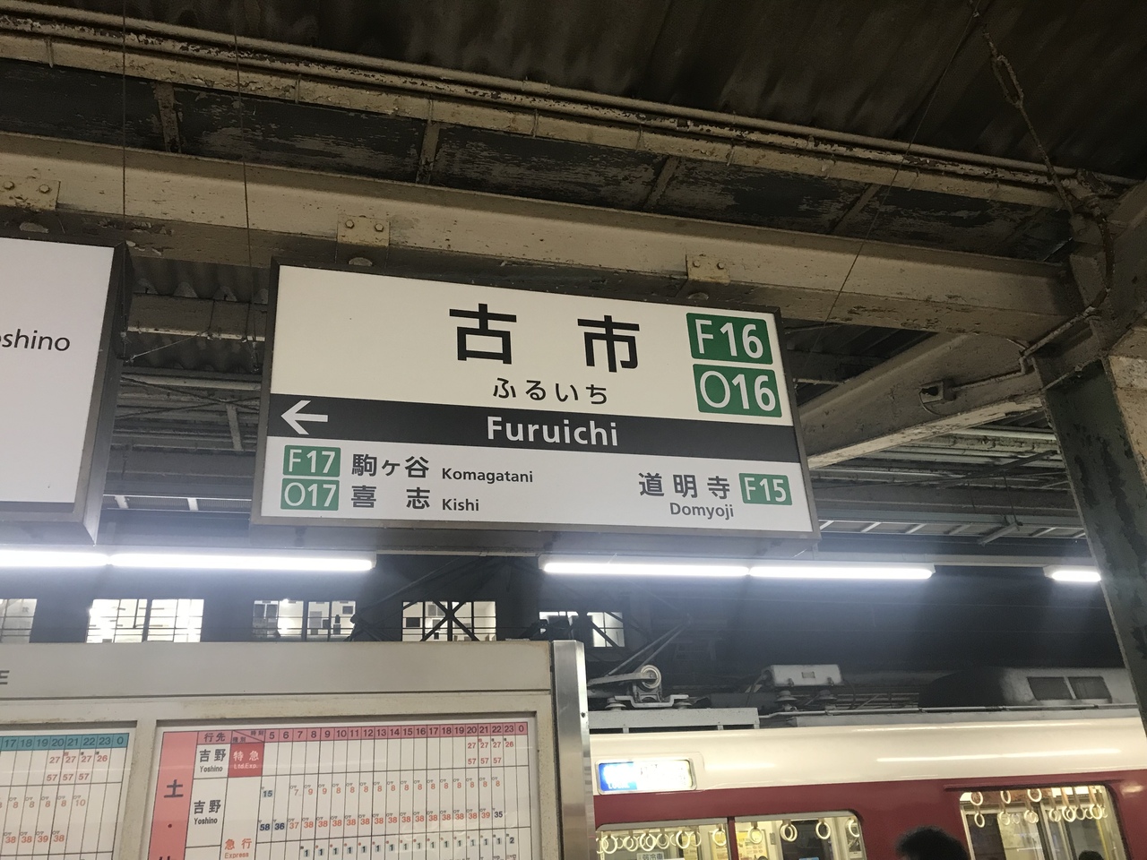 近鉄南大阪線、長野線の結節点です。急行、準急、普通に加えて、朝(大阪阿部野橋方面行き)と夜(吉野方面行き)一部の特急も停車します。