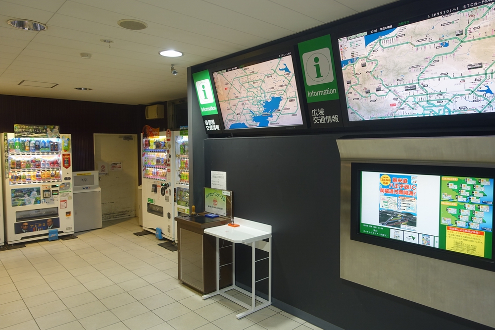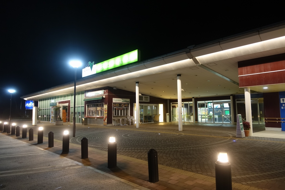外回り側を利用。寄ったのが深夜23時ということもあって、開いているのは自販機とトイレのみで閑散としてました。フードコートや売店の営業時間は7:00~21:00で、早朝や深夜には利用できないので注意が必要です。トイレはまだ新しくきれいに掃除されていて快適に使えました。