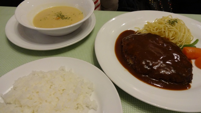 USJを満喫した後は、新梅田食道街のスエヒロでディナーとなりました。お店の内装やテーブルクロスなどからも歴史や風格を感じる大人の雰囲気のお店でしたが、子どもたちに喜ぶようなバンバークやエビフライなどの定番の洋食が揃うお店でした。梅田を代表する名店で、昔ながらの洋食を楽しみました。
