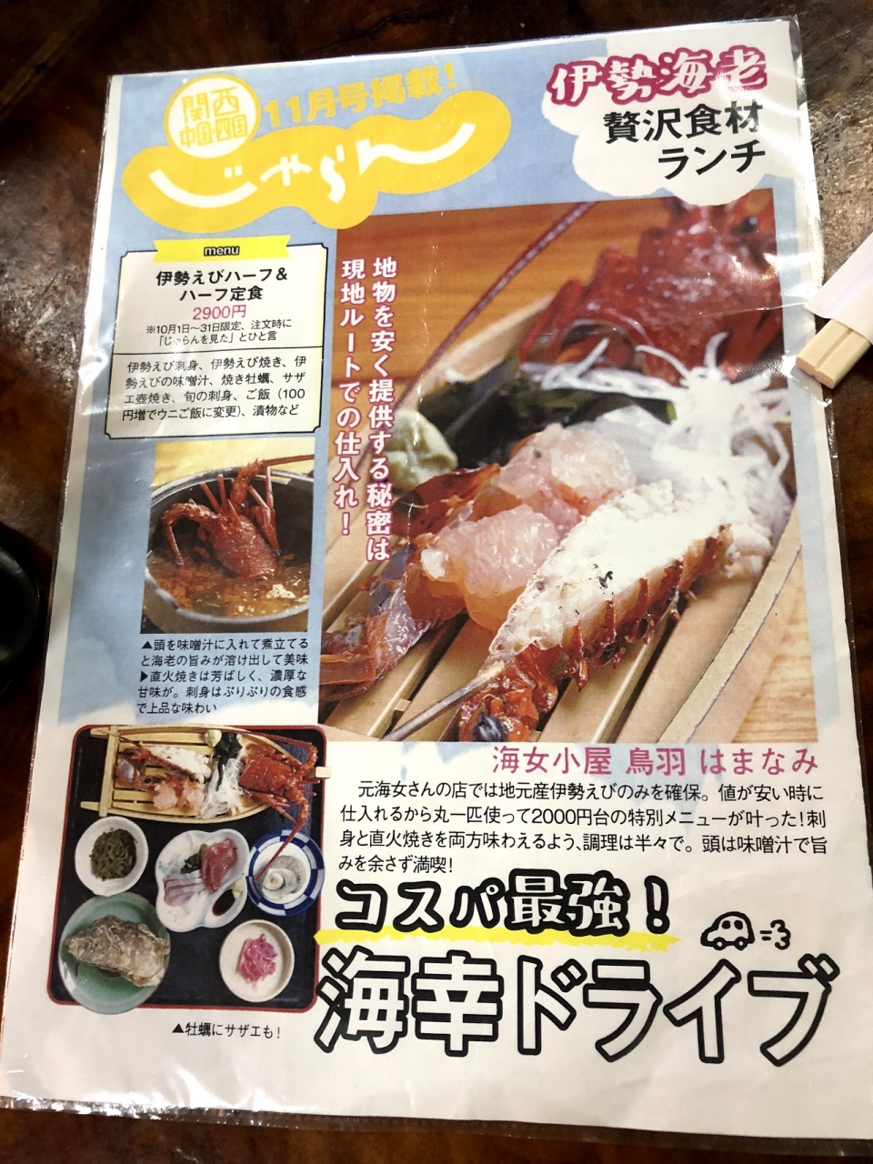 伊勢エビや魚介類が、お手頃価格で食べられます。
