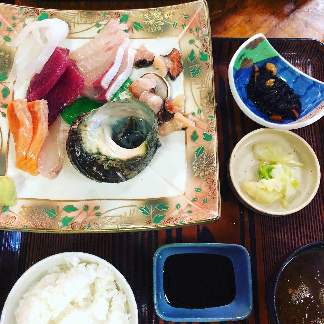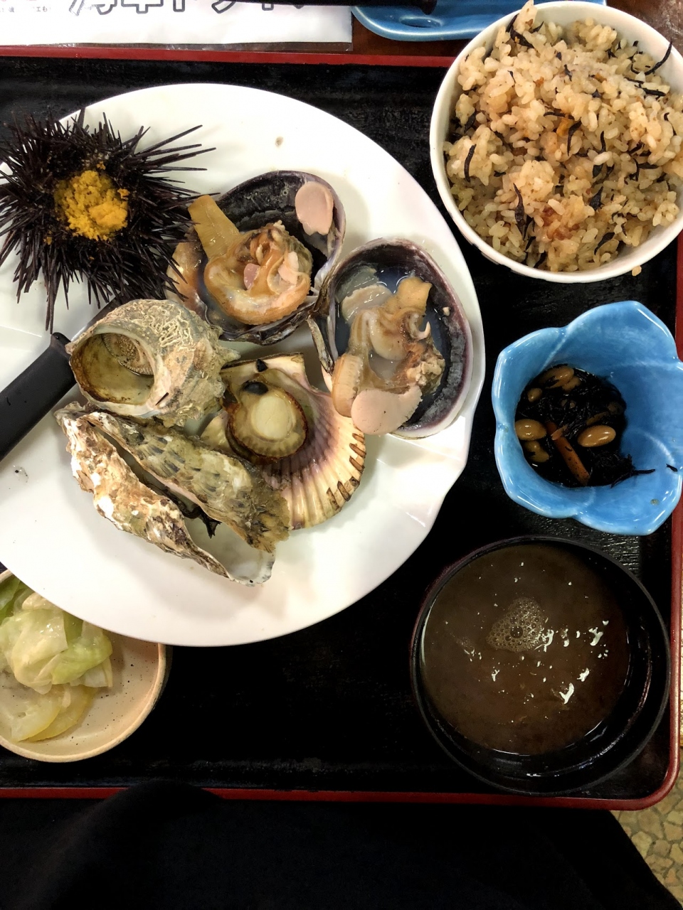 我々は夜に伊勢エビがあるので、貝とお刺身にしました。