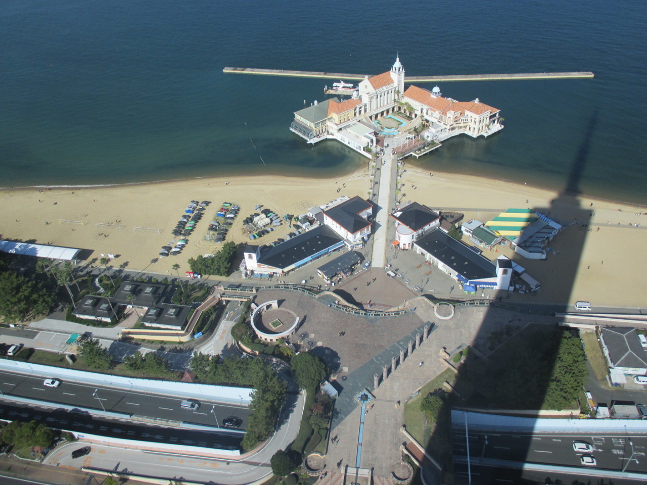 特に北にあるシーサイドももち海浜公園はよく見えて、マリゾンの独特なひし形の建物が海に浮かんでいる様子がよく見えました。