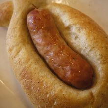 大き目のパン生地に、大き目のウィンナーを乗っている。