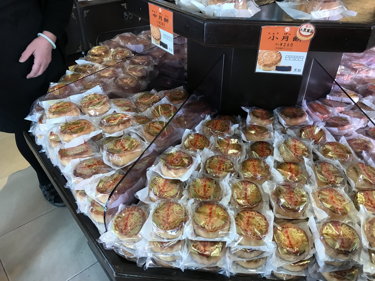 色んな種類の月餅があり、どの味にしようか悩みながら店内をウロウロ。