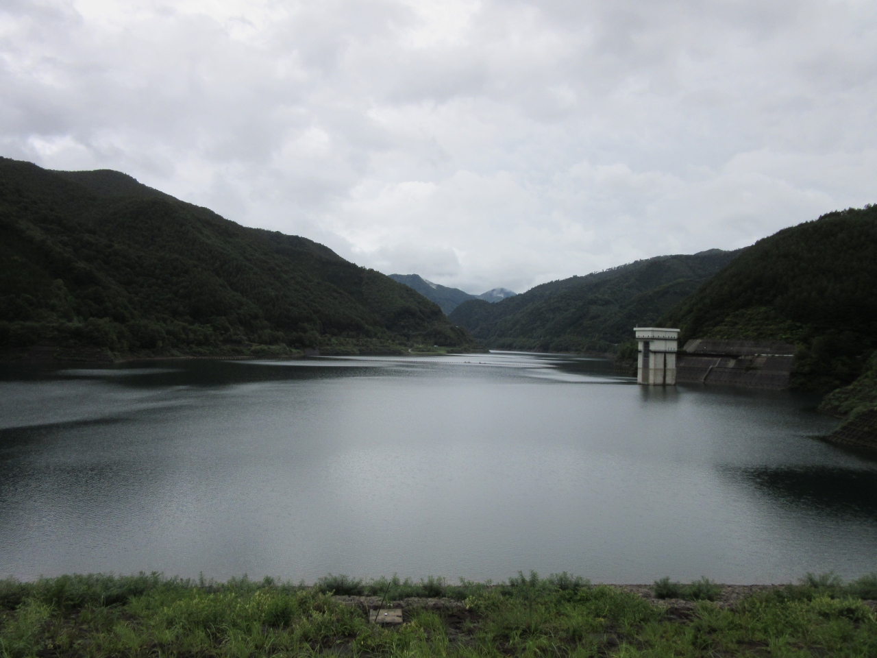 下流側はロックフィルダムですが大分草が生えてきてしまい美しさはやや損なわれています、堤高も140mもありますが、ロックフィルダムは提体の傾斜が緩やかなので怖さは全然ありませんでした。
