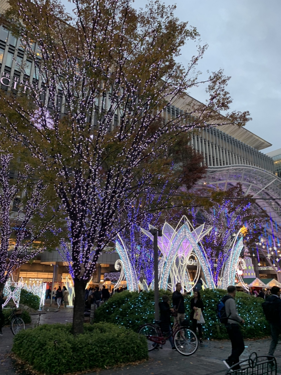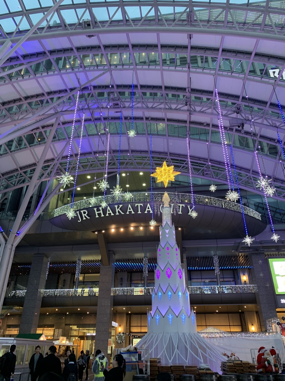 夕食を食べにJR博多シティに行くと博多駅の博多口には80万球のイルミネーションの光の街が出来てました。昼間とは全く雰囲気が違っていて、とてもロマンティックで地元の人だけではなく、観光客や外国人など賑わっていました。次回はクリスマスマーケット開催時に行きたいと思います。